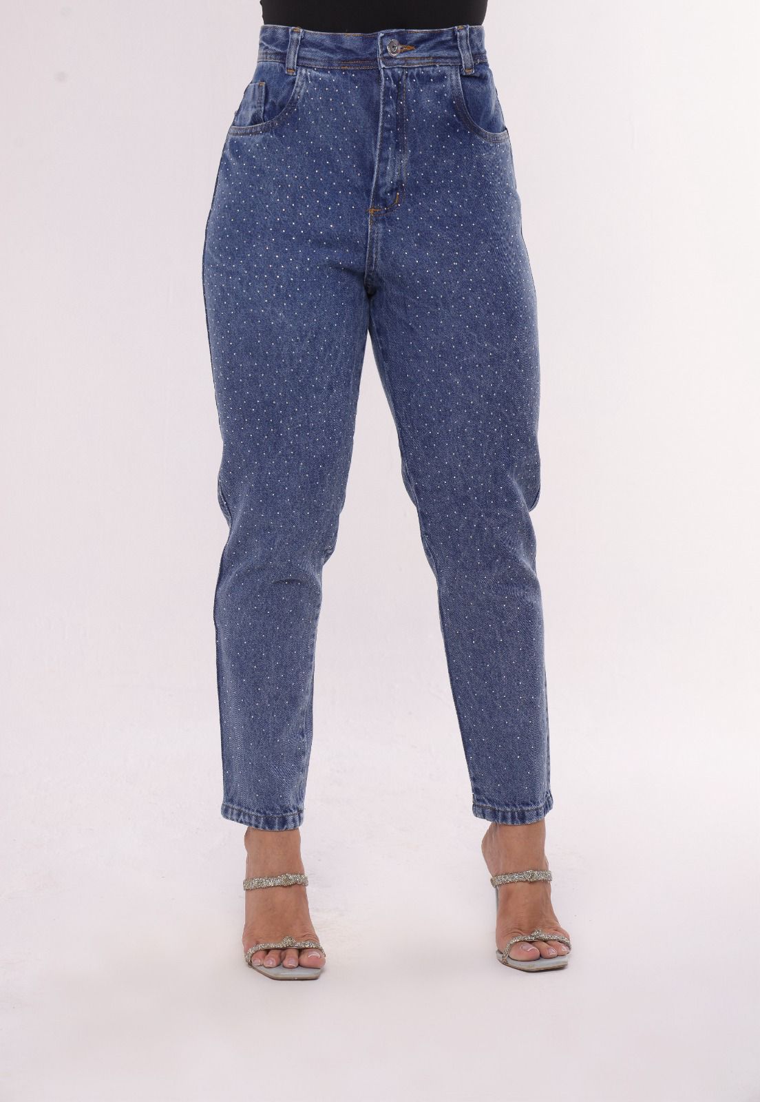 Brilho e elegância no seu dia a dia! A calça jeans com strass é perfeita para quem busca um visual moderno com um toque glam. Confeccionada em jeans 100% algodão, sem elastano, ela oferece estrutura firme e caimento impecável. A lavagem escura realça os detalhes em strass aplicados por toda a peça, garantindo estilo e sofisticação em qualquer ocasião.