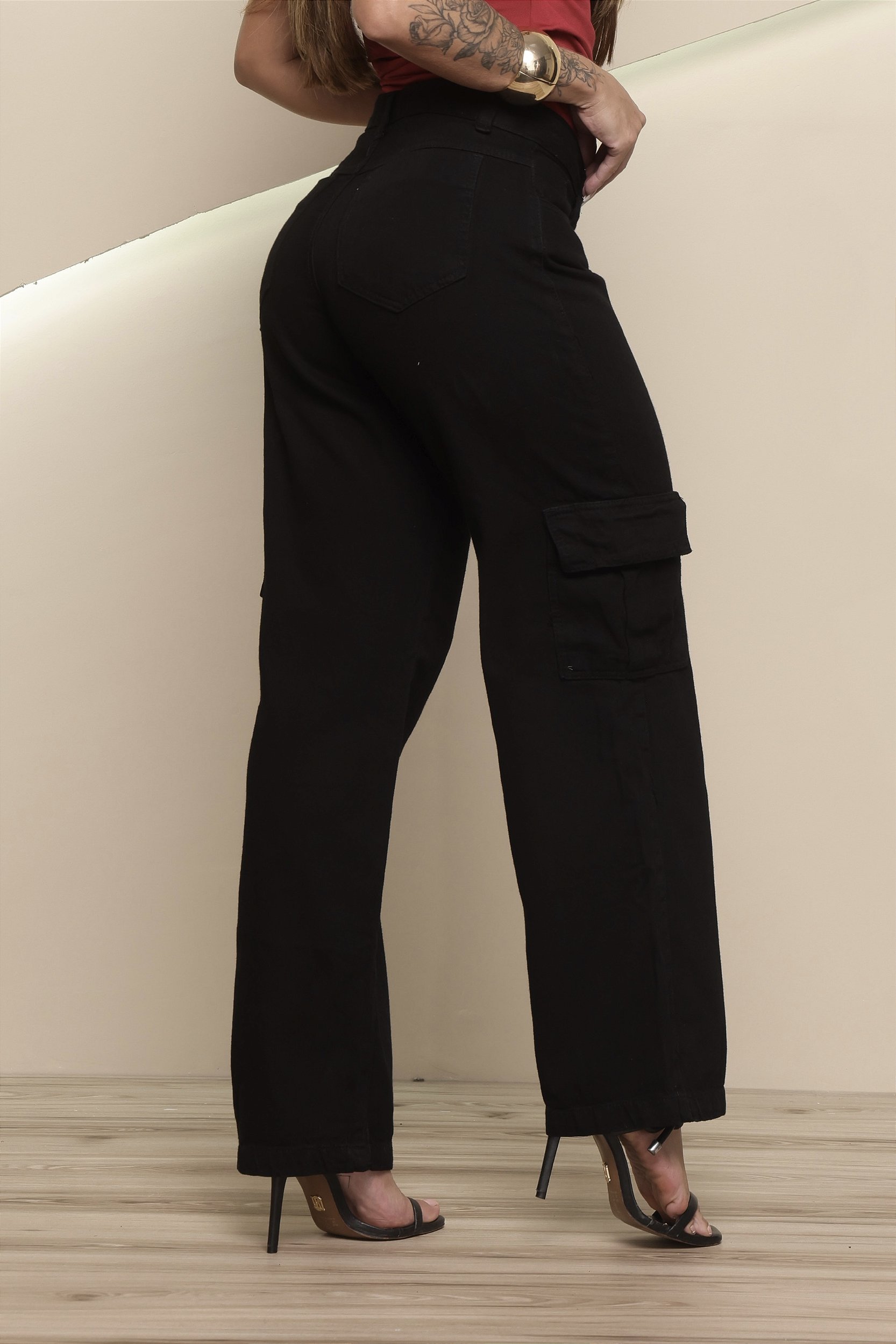 Calça jeans cargo preta, com toque moderno e prática funcionalidade. Confeccionada em denim de alta qualidade, oferece caimento confortável ao longo do dia e um visual contemporâneo.