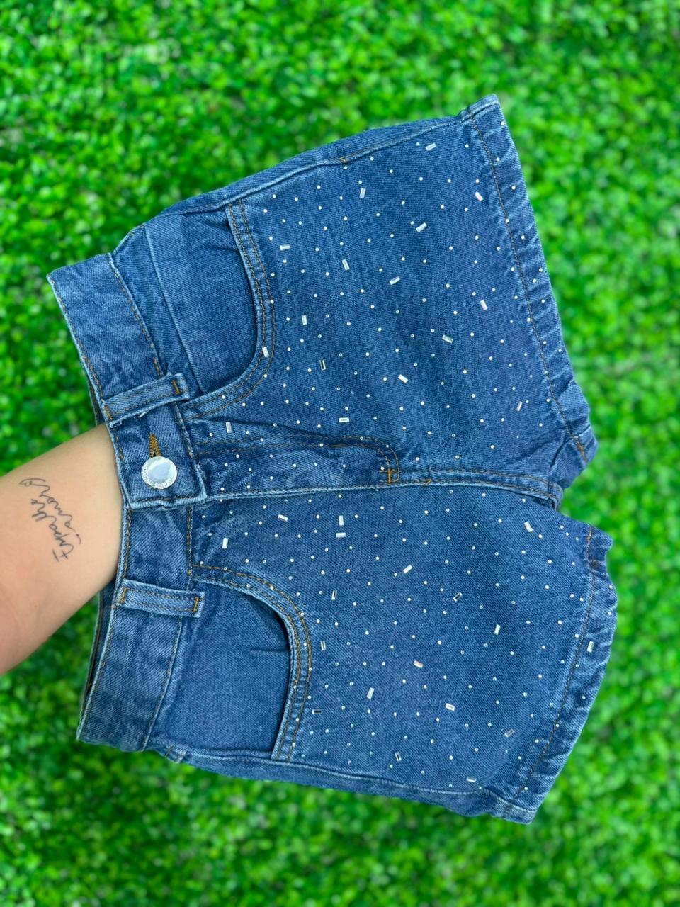Eleve o estilo do seu look com este short jeans feminino de cintura alta, desenvolvido em jeans azul de alta qualidade e acabamento impecável. A peça conta com aplicações de strass delicados, que adicionam um toque de brilho e modernidade, perfeito para quem gosta de unir conforto e elegância no dia a dia.